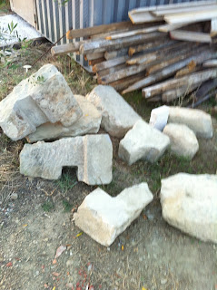 Back to the house....I would estimate that 3/4 of the old structure has been demolished and when the builders come back in early September they will clear the rubble to sort the stones to be reused and start preparing to work on the foundations. The larger stones from doorways have been set aside already along with the beams and the roof tiles.
